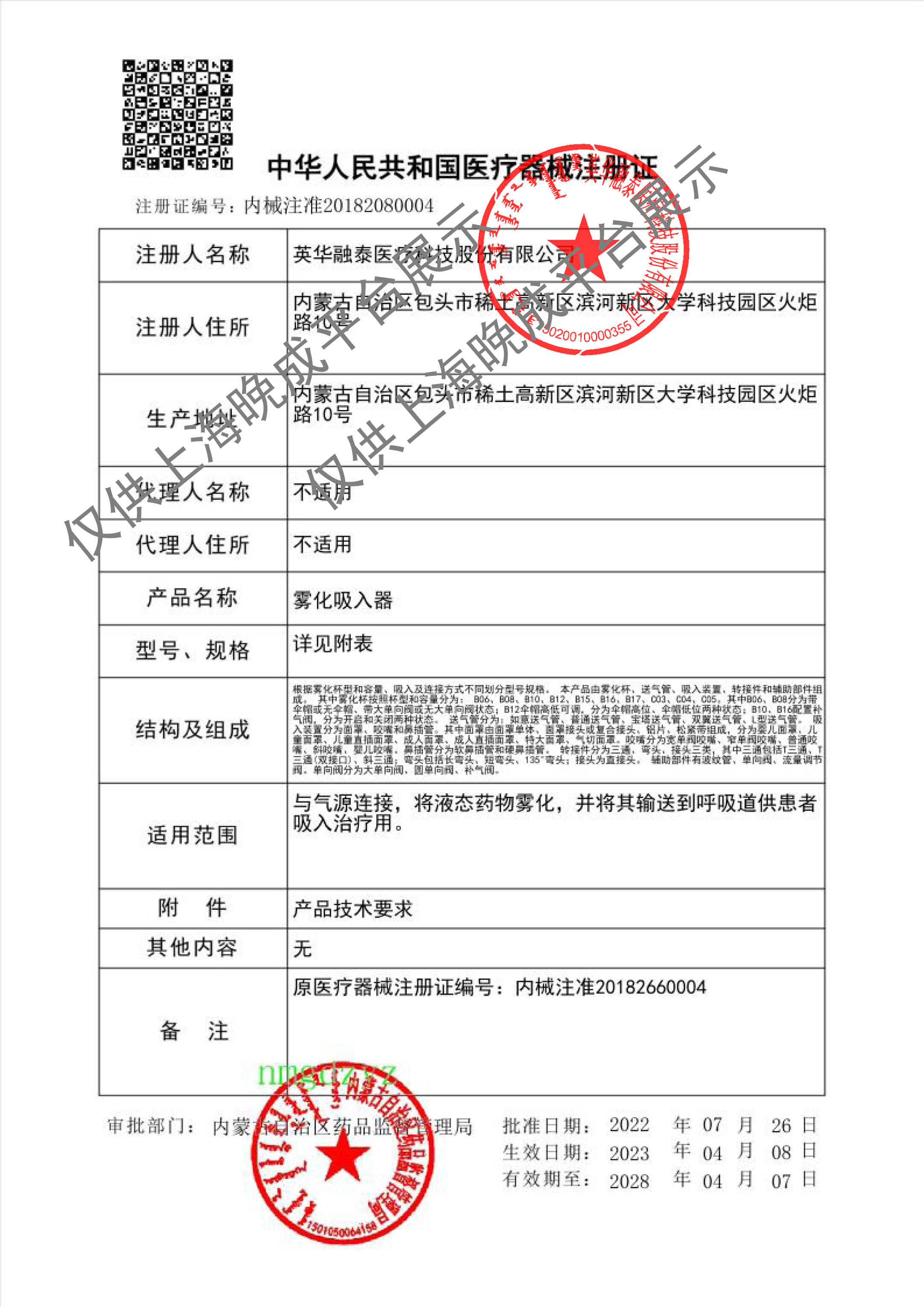 正品銷(xiāo)售 英華融泰霧化面罩B06,歡迎聯(lián)系訂購(gòu)。