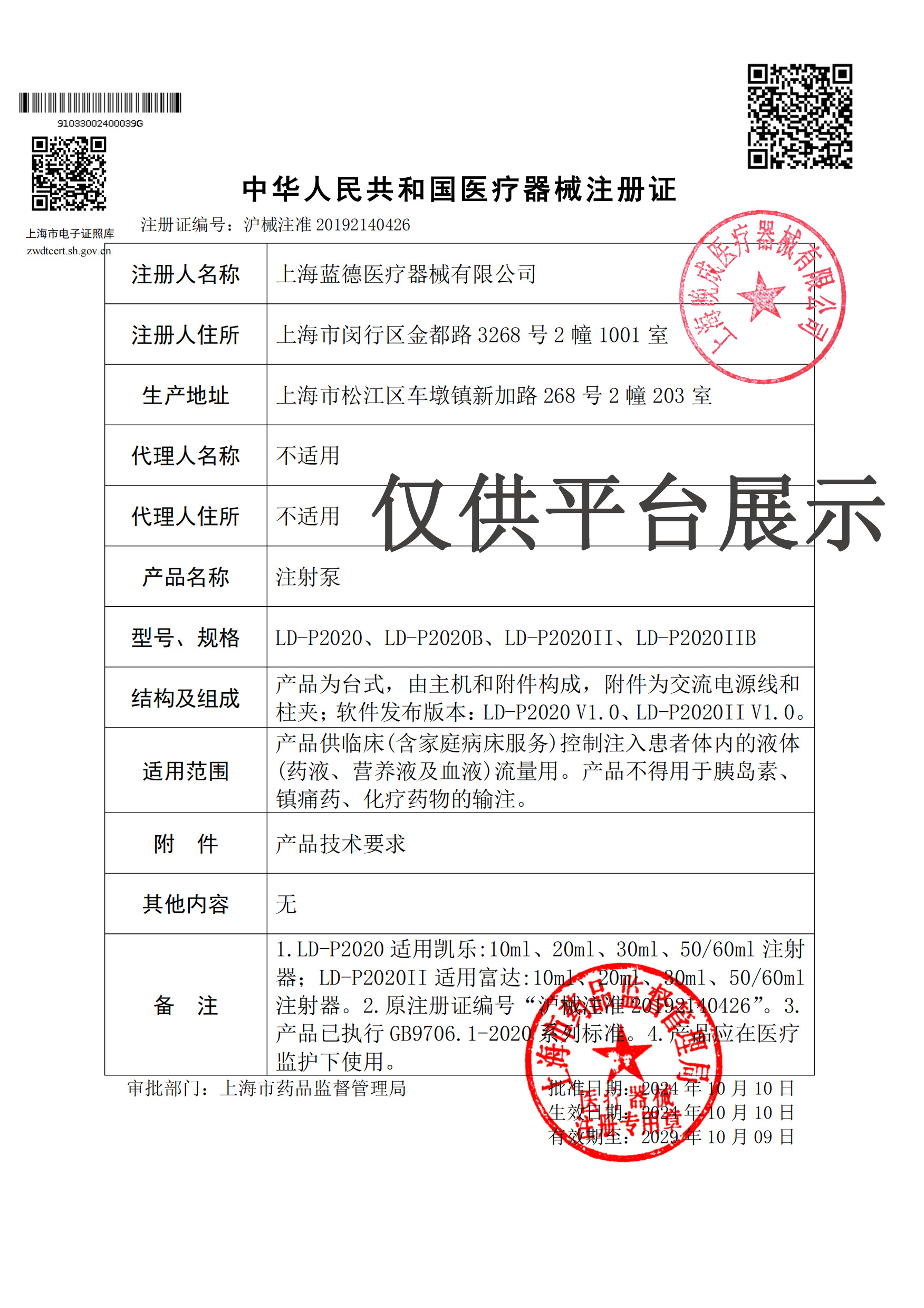 醫(yī)械網(wǎng)是一家提供上海藍(lán)德雙通道注射泵LD-P2020II價(jià)格、參數(shù)介紹等信息的展示平臺(tái),為您提供優(yōu)質(zhì)的上海藍(lán)德雙通道注射泵LD-P2020II產(chǎn)品,上海晚成醫(yī)療器械有限公司專注于各類醫(yī)療器械批發(fā)及零售,聯(lián)系電話:400-006-1850。