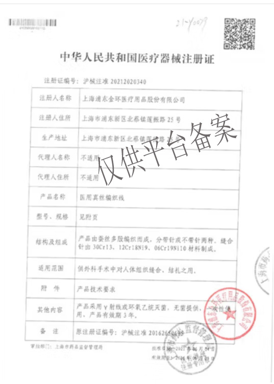 | 產(chǎn)品名稱 : | 上海金環(huán)醫(yī)用真絲編織線 |