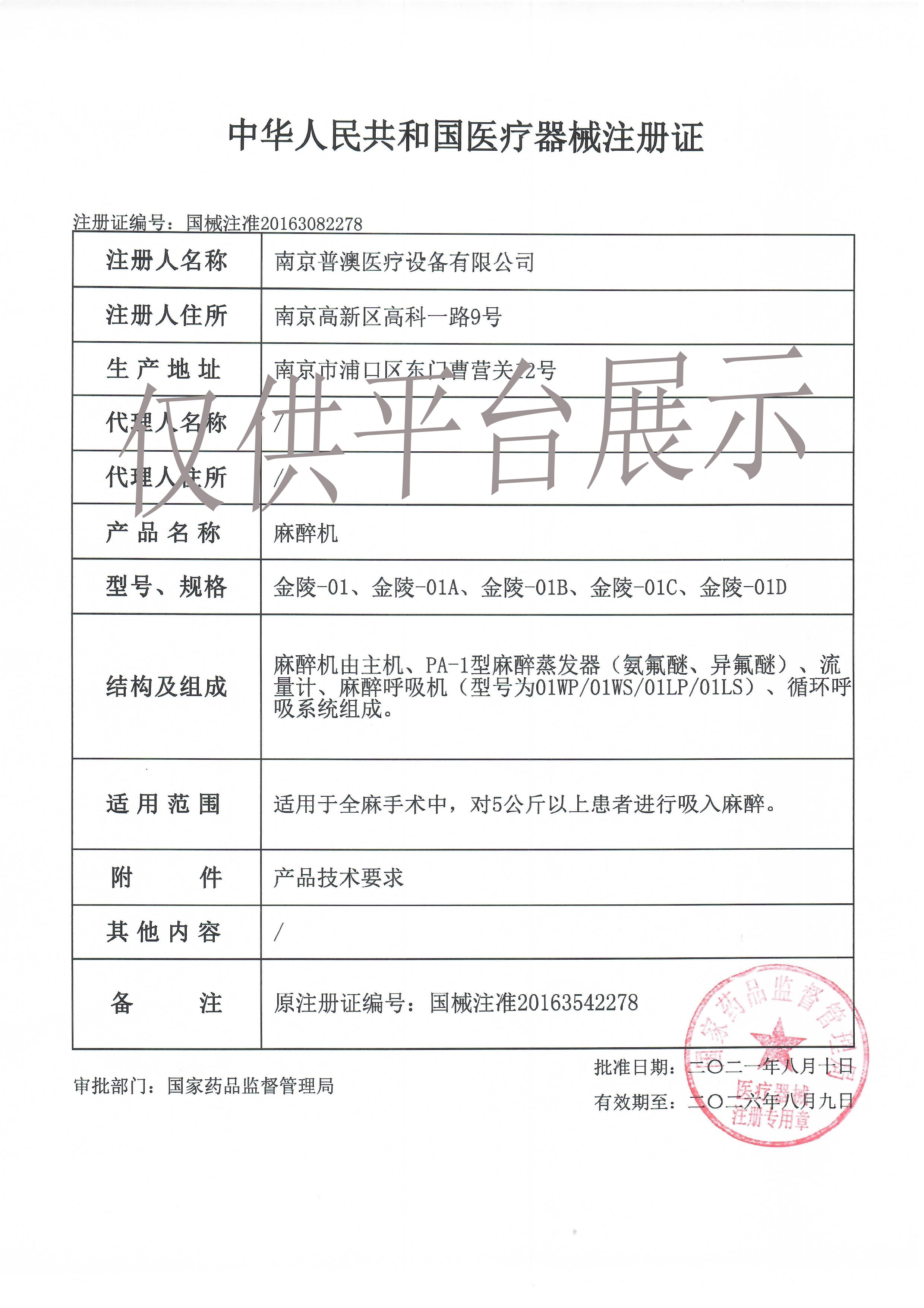 南京普澳麻醉機金陵銷售電話: