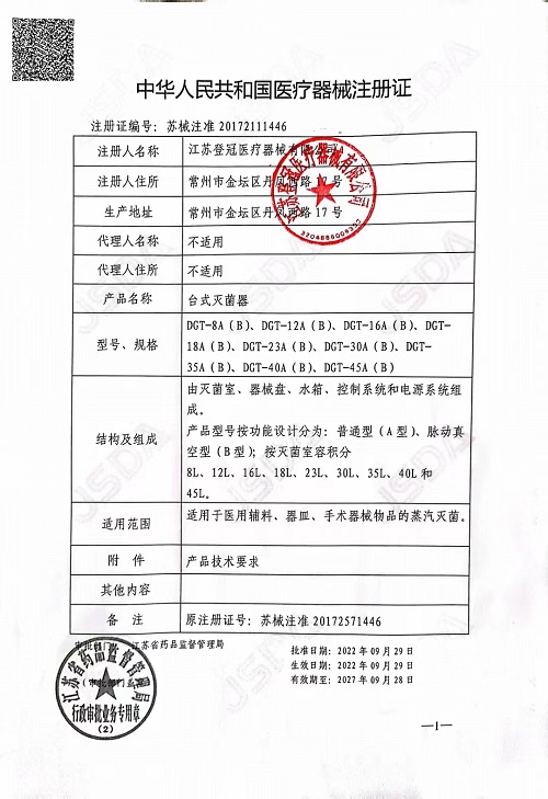 | 產(chǎn)品名稱 : | 登冠臺式高壓滅菌器DGT-18B型 |