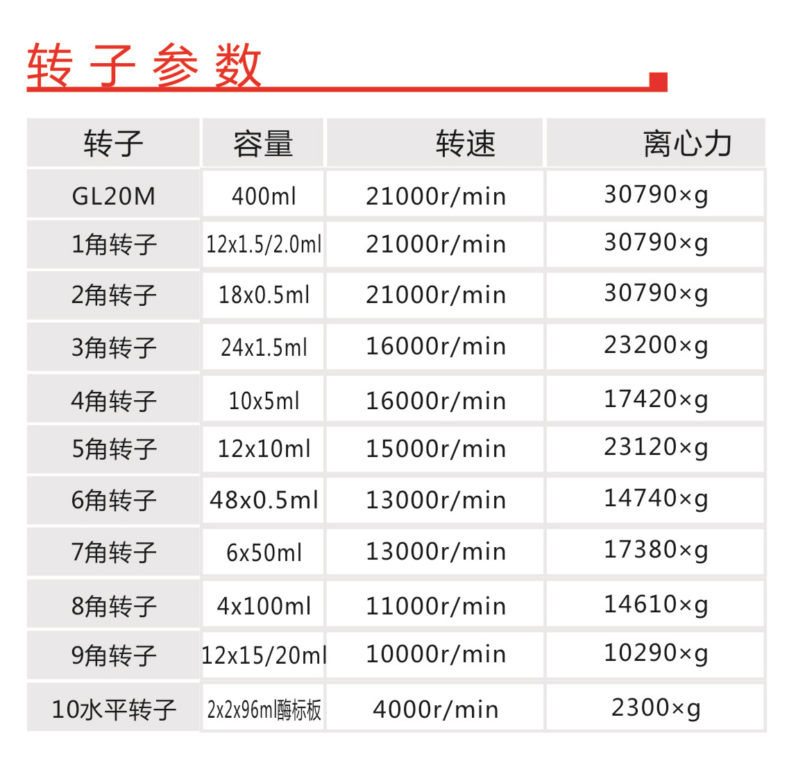 立式高速冷凍離心機(jī)轉(zhuǎn)子參數(shù):
