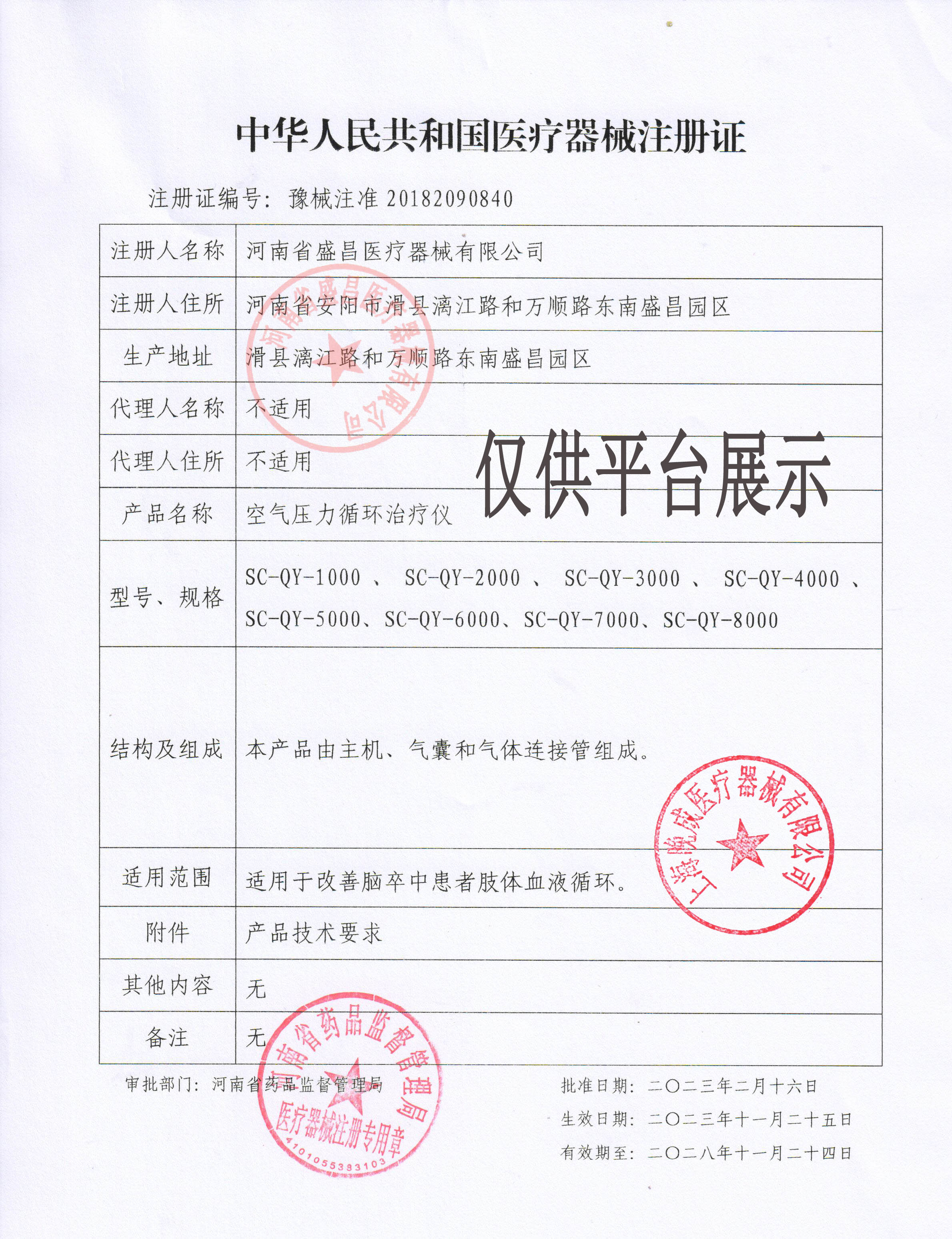 產(chǎn)品名稱 : 盛昌 SC-QY-8000型 空氣壓力循環(huán)治療儀