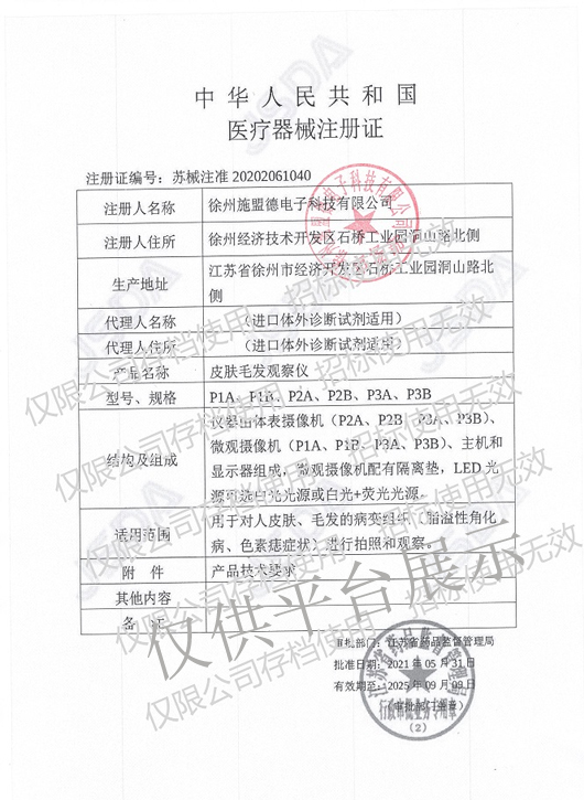 | 產(chǎn)品名稱 : | 施盟德皮膚毛發(fā)觀察儀P3B型 皮膚毛發(fā)二合一)皮膚鏡 |