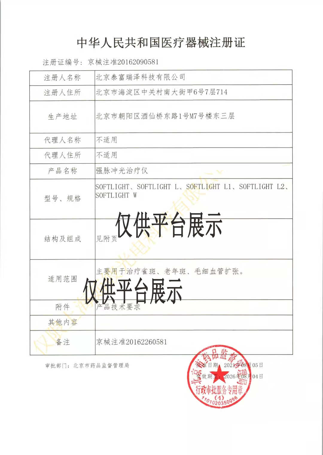 注冊證編號:京械注準(zhǔn)20162260581