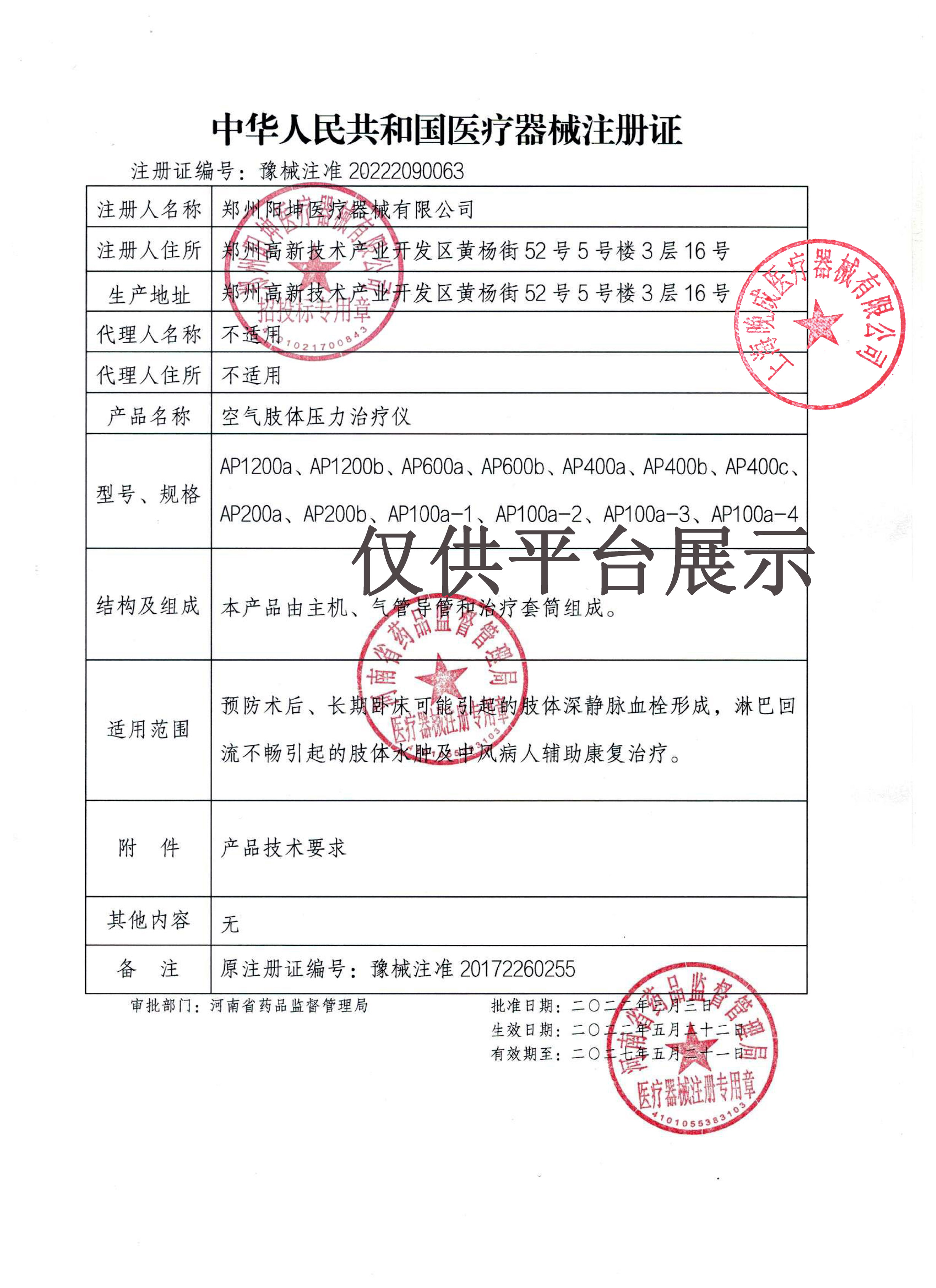 | 產(chǎn)品名稱 : | 陽坤 十二腔空氣肢體壓力治療儀AP1200b 三種治療模式 |